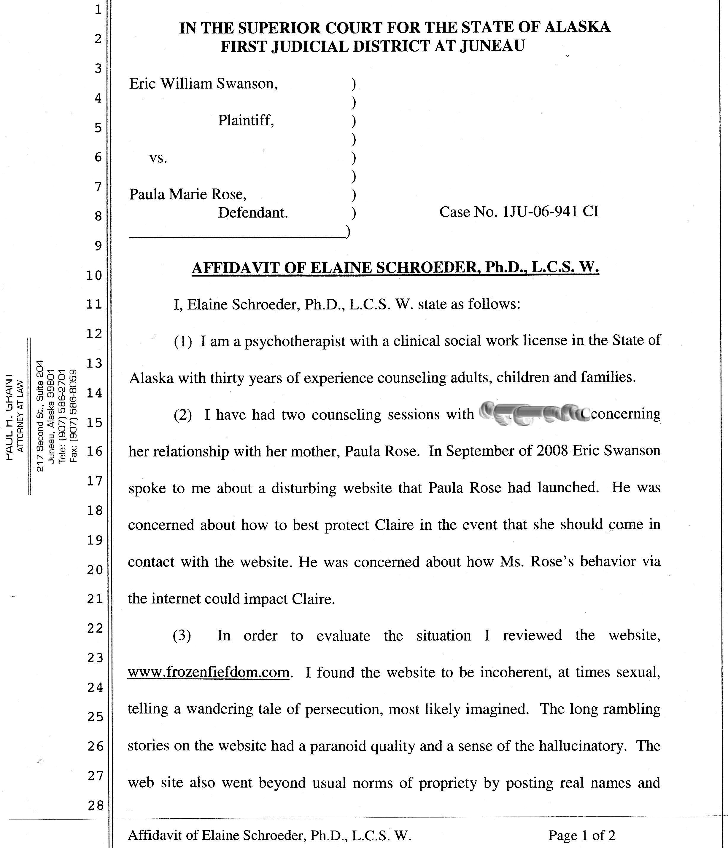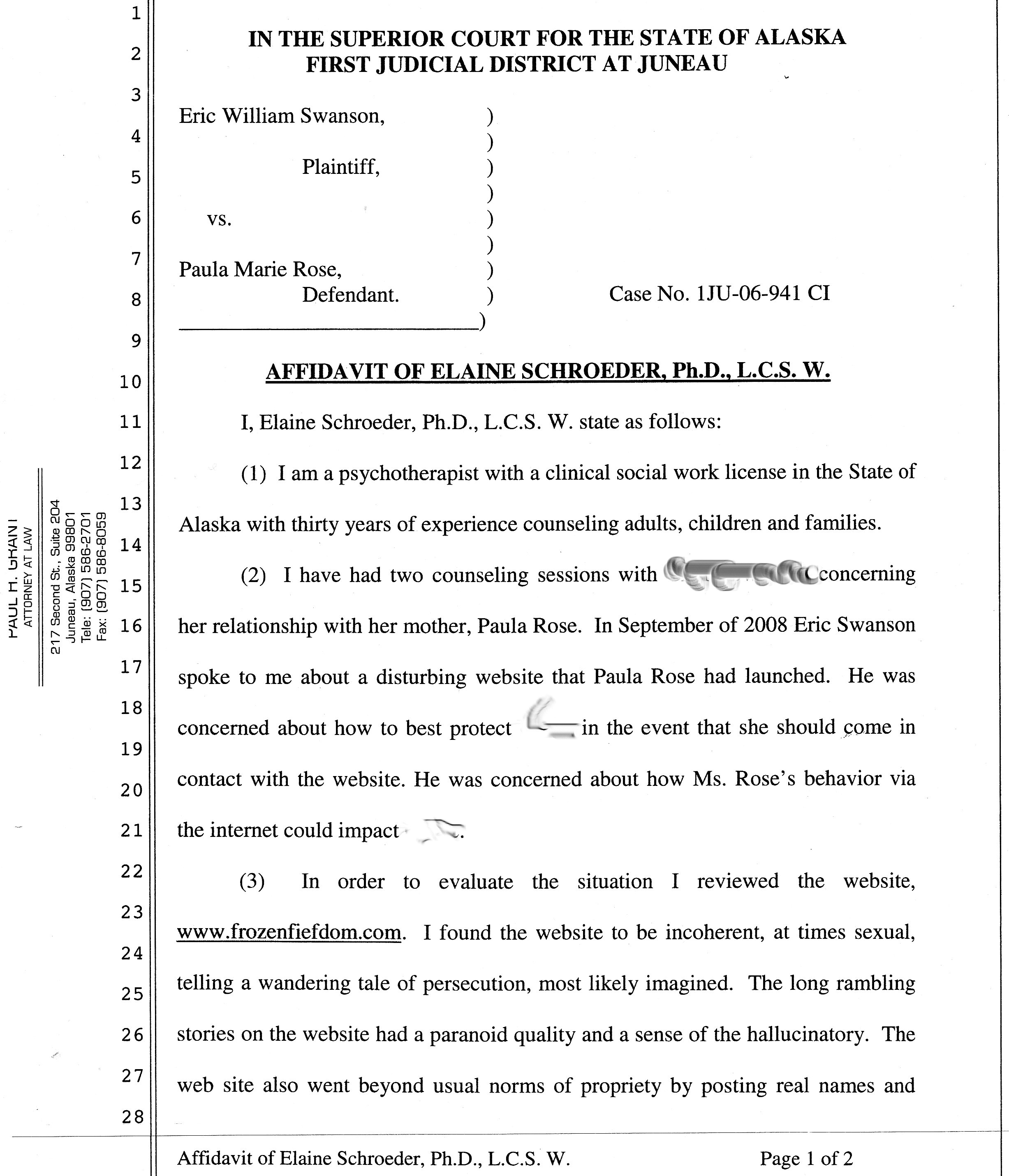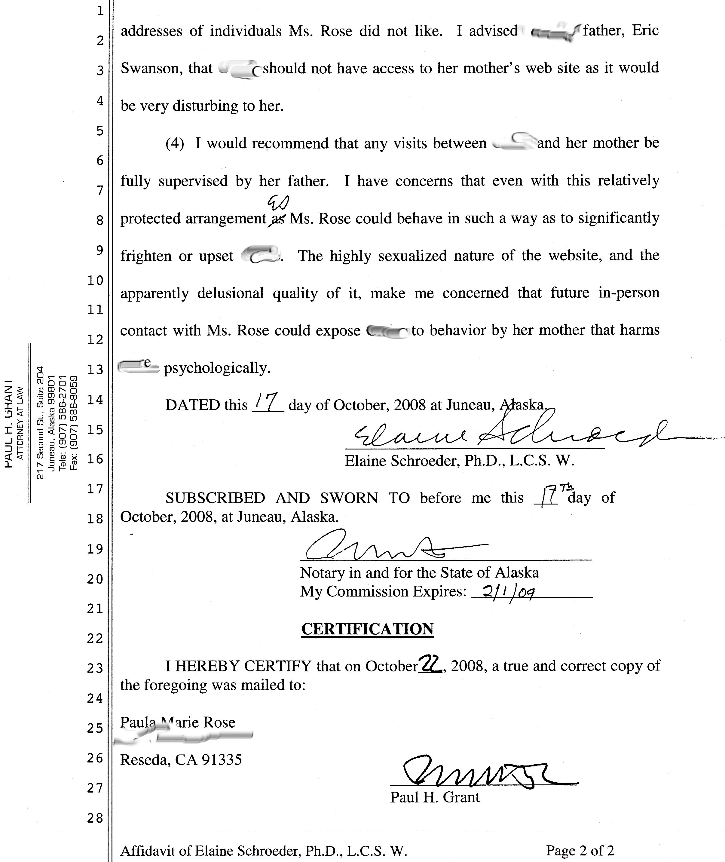 I probably could have paid a licensed mental health professional to review my website and write a report stating their opinion of me and of my website was quite the opposite of Dr. Elaine Schroeder's. I chose not to, as it is common knowledge that professional opinions are usually slated in favor of the person making the request and / or paying the bill.