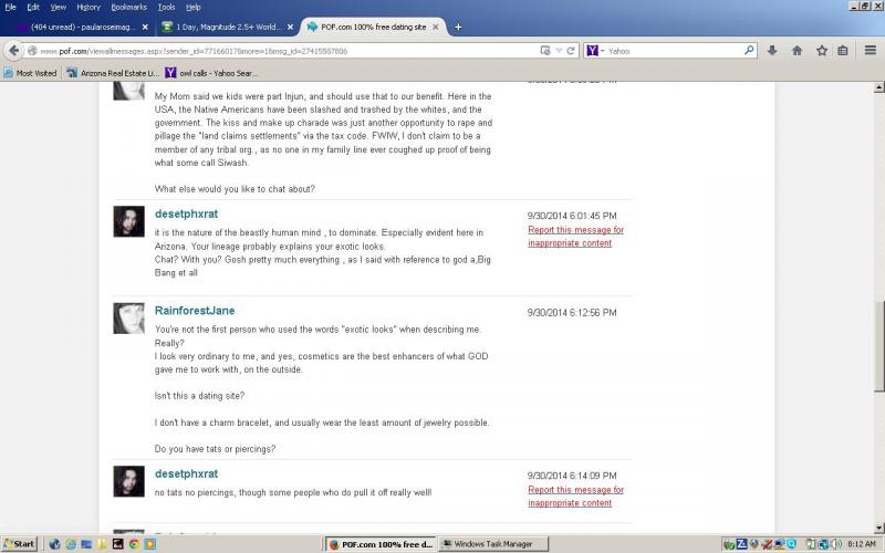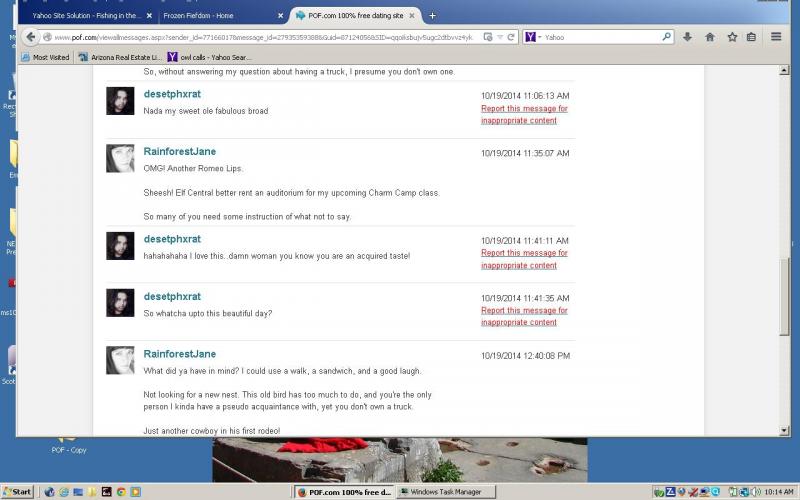 My profile from Plenty of Fish (POF.com) will be highlighted directly below the exchanges between him and me. And I'll be removing my profile, as I know what works for the dragging of the net, and a good catch usually has some bycatch.