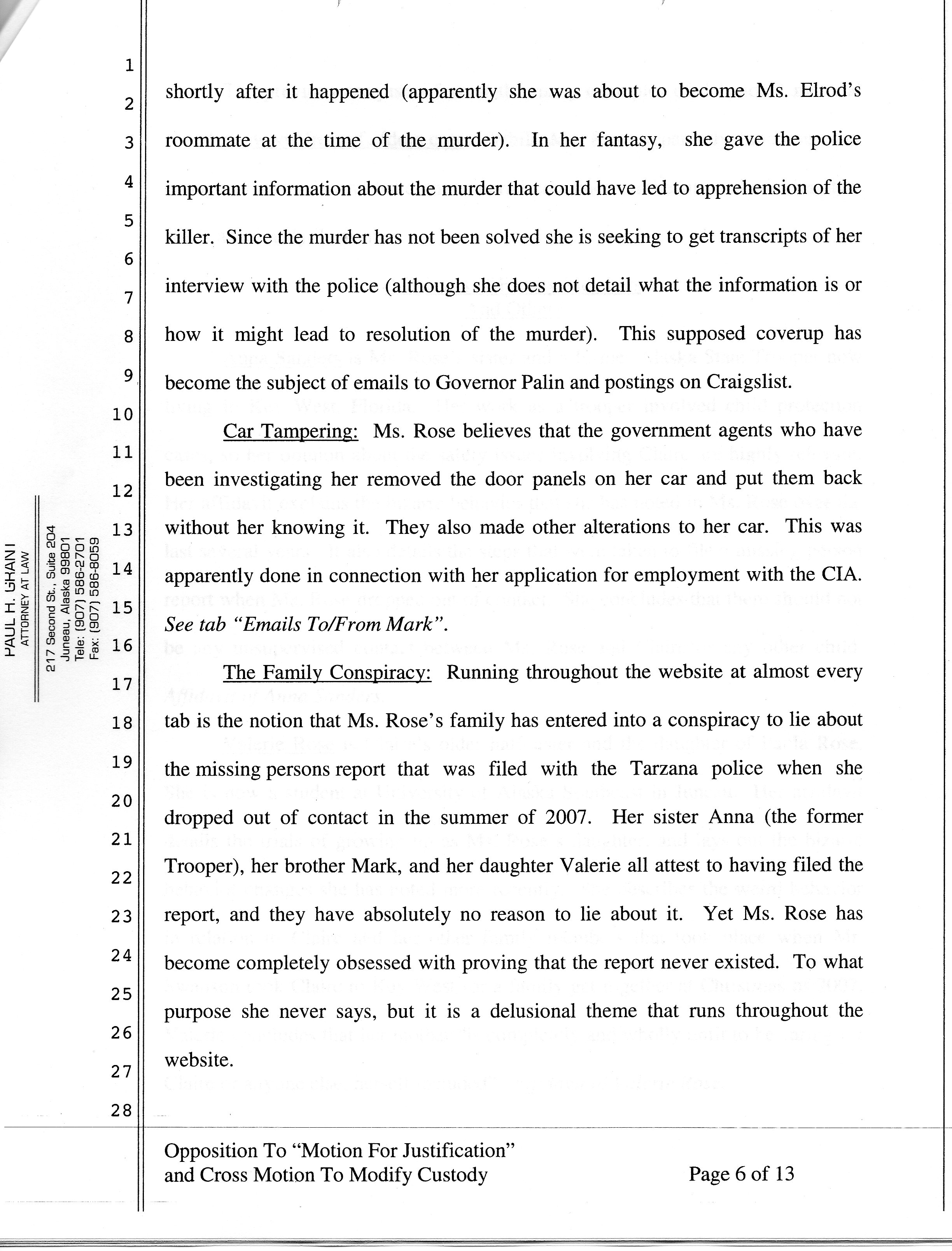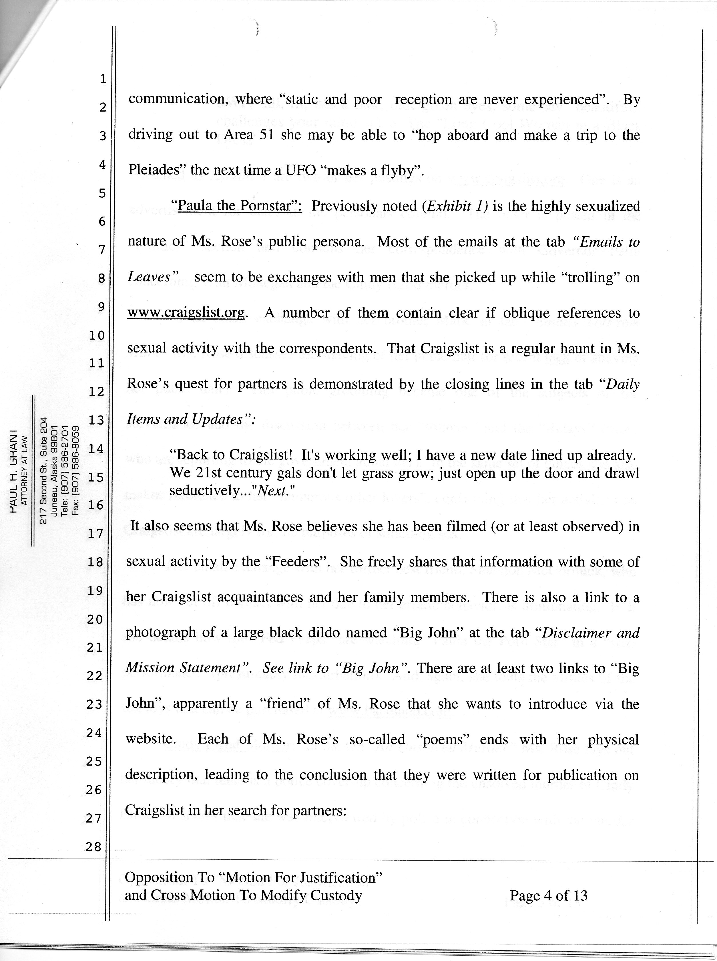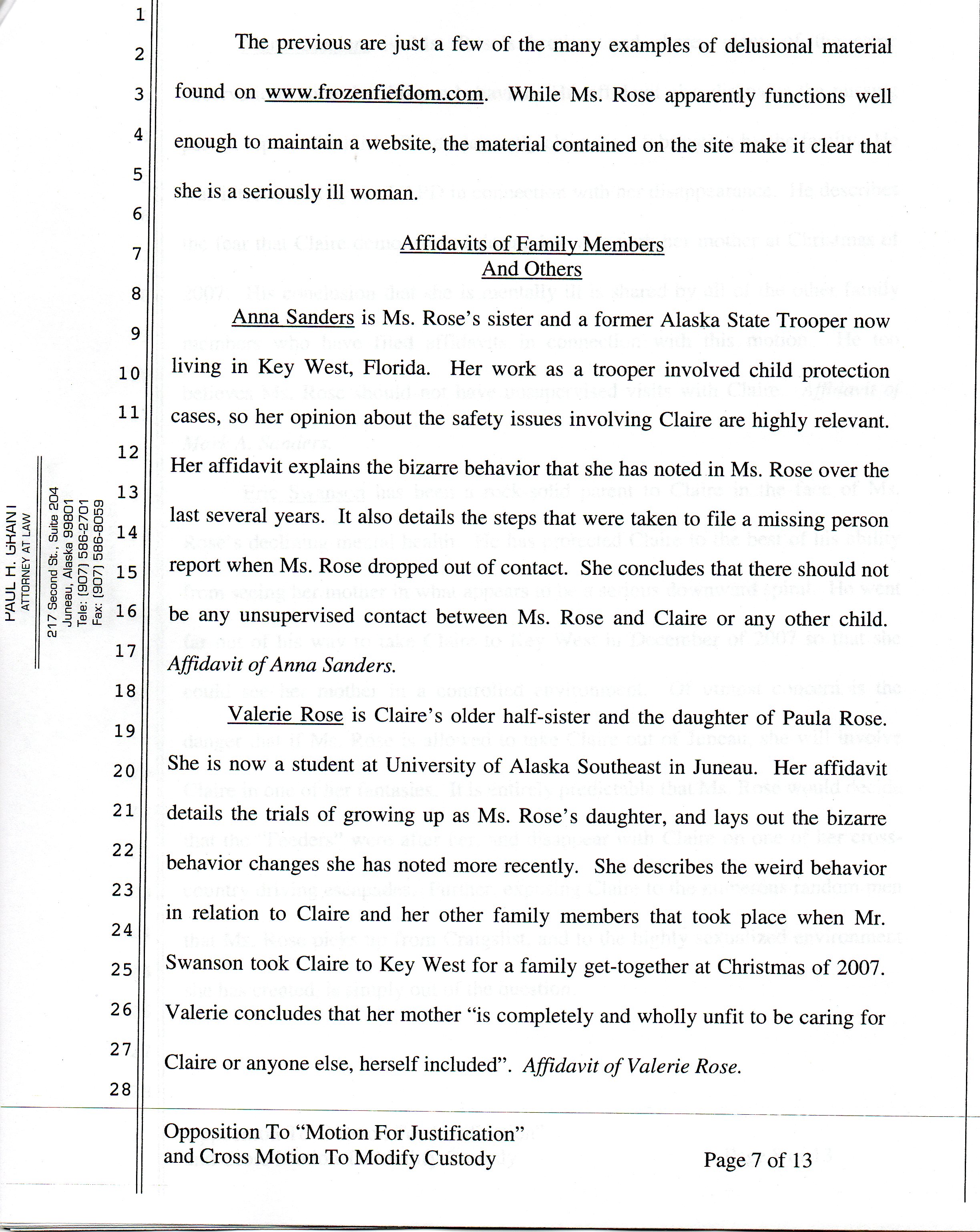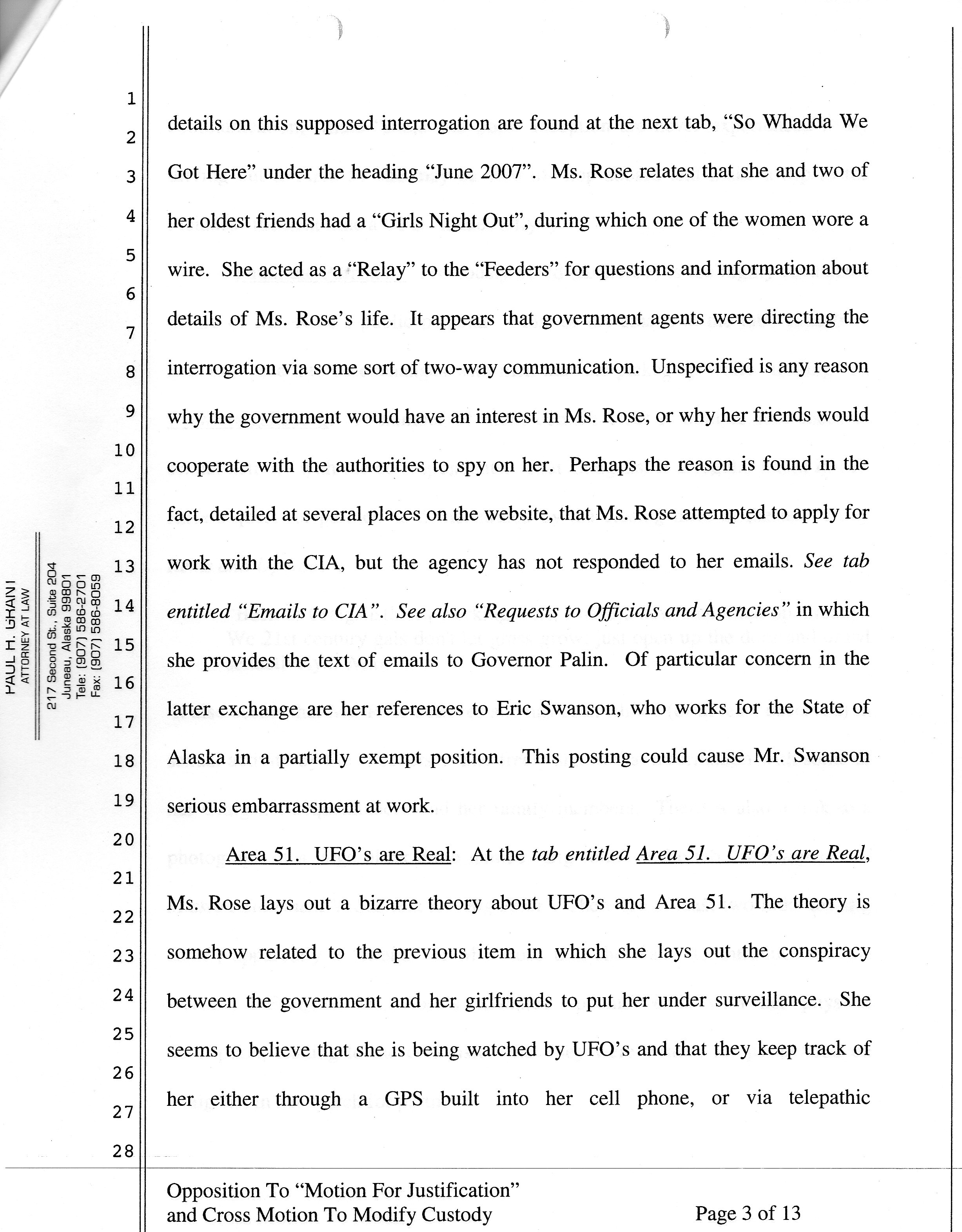 Now that I've had a more thorough review of this document; I see it isn't necessary for me to address each item in complete detail, or to refute each of his statements, as his own witnesses appear to have misrepresented the truth, and the bottom line is: I was never a "Missing Person" during 2007. I have much material below the Motion, so be sure to scroll through.