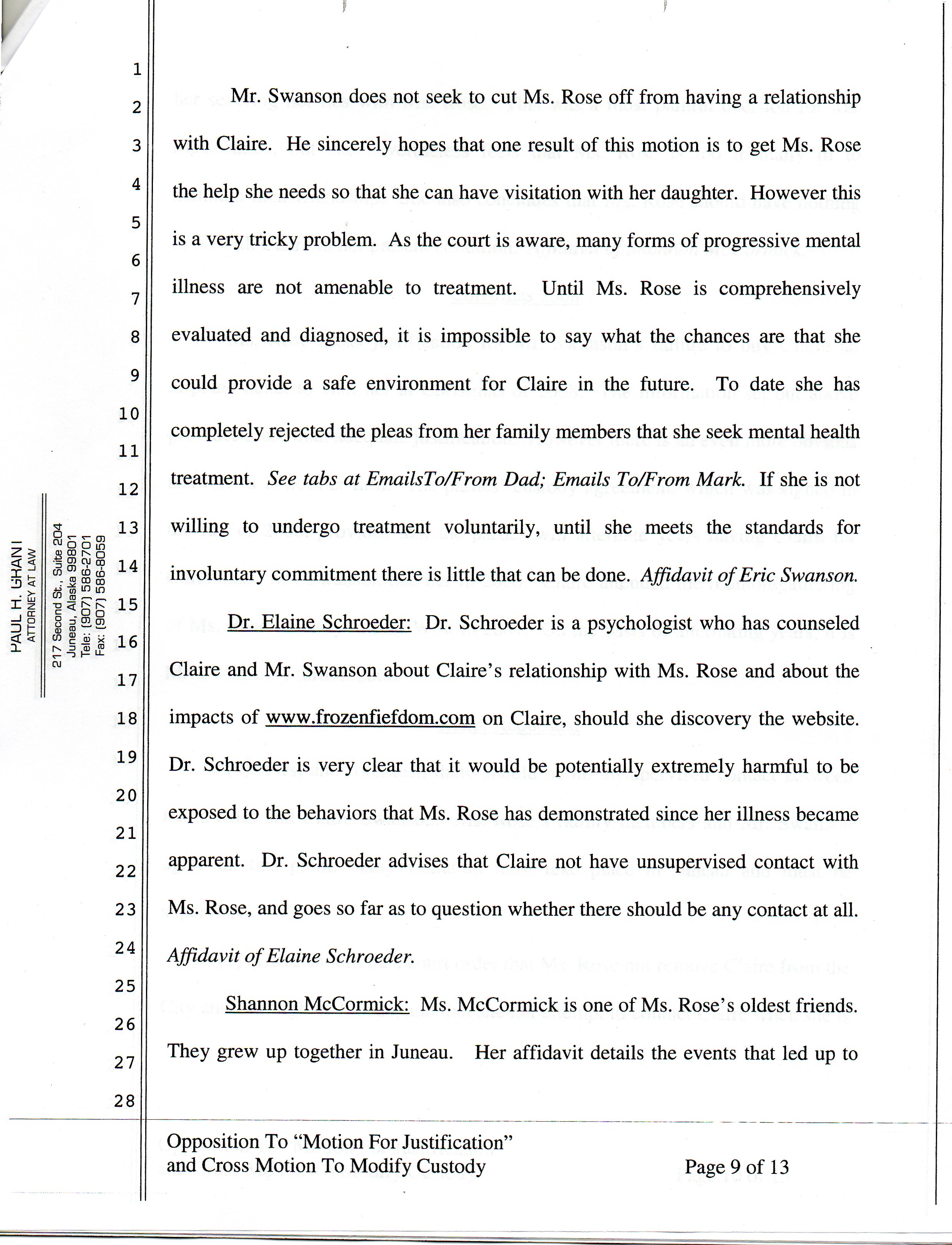 On Page 9 of 13, re: Dr. Elaine Schroeder, and Shannon McCormick. I have made comments and addressed some key points under their specific Affidavits published on this site, and I'll add to each section when I have more time.