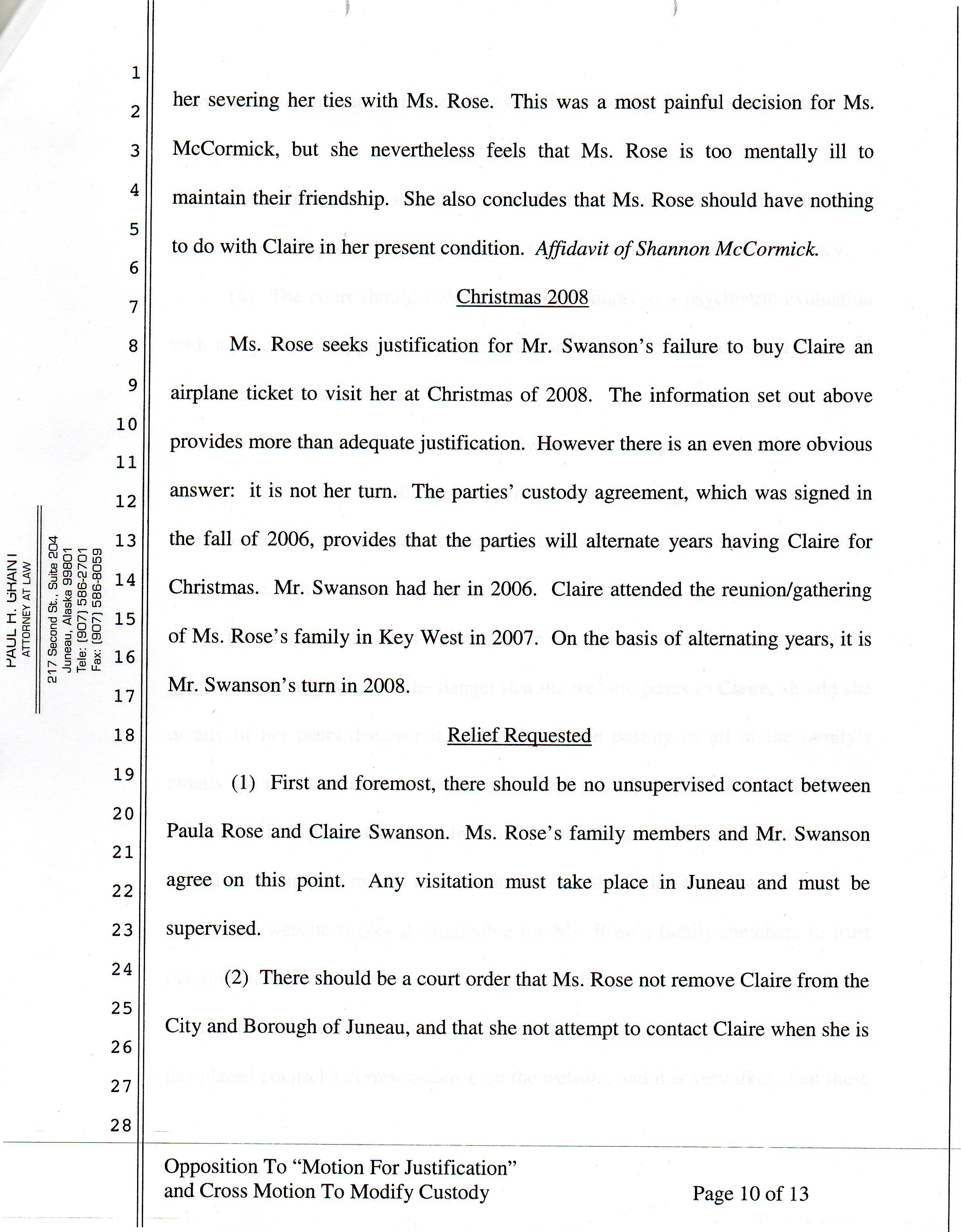 On Page 8 of 13, while discussing Eric William Swanson and his Affidavit; Mr. Grant made the statement "He went far out of his way to take Claire to Key West in December of 2007 so that she could see her mother in a controlled environment."