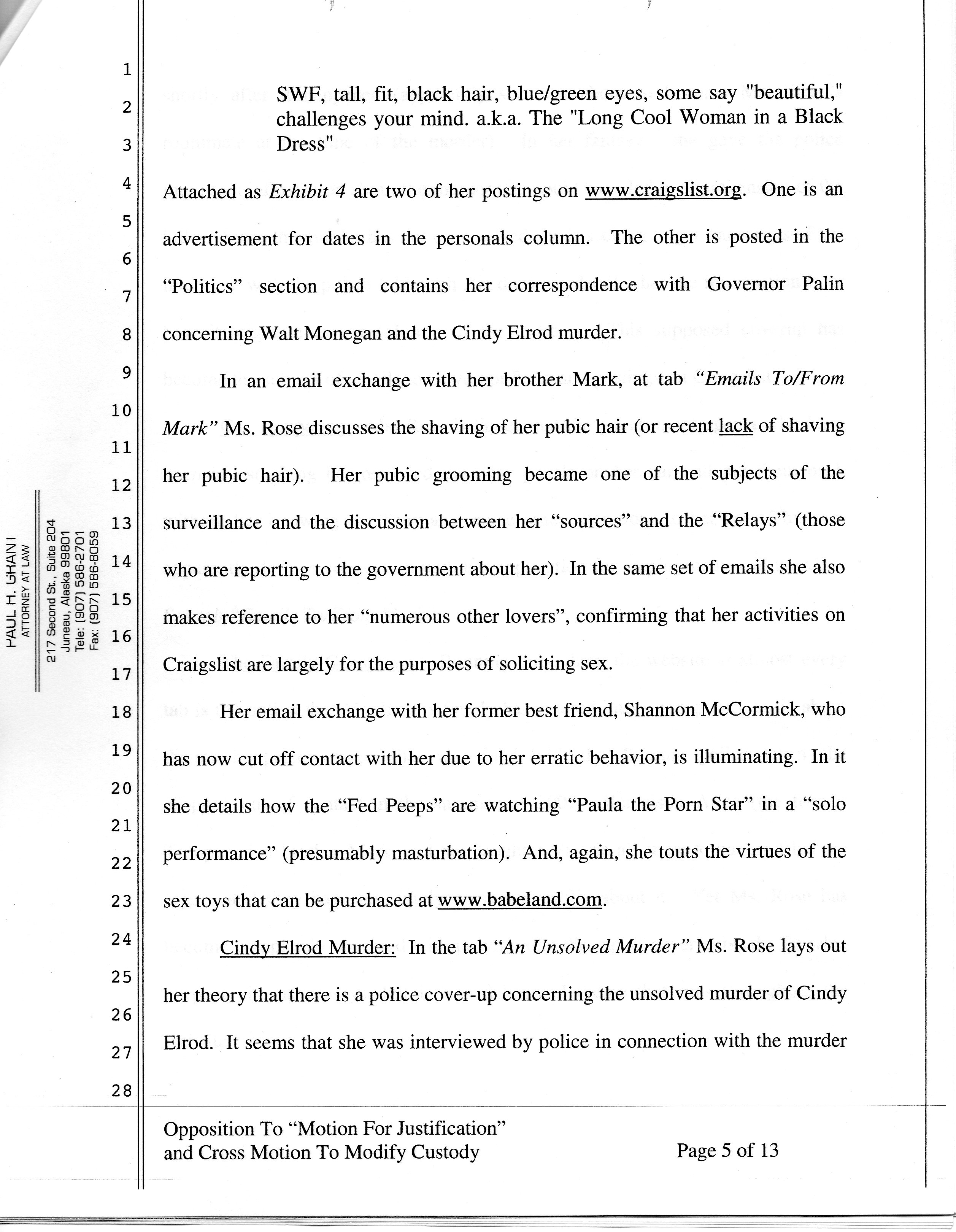 Please list with complete details, what you mean by your words of "...seem to be exchanges with men that she picked up while "trolling" on www.craigslist.org."