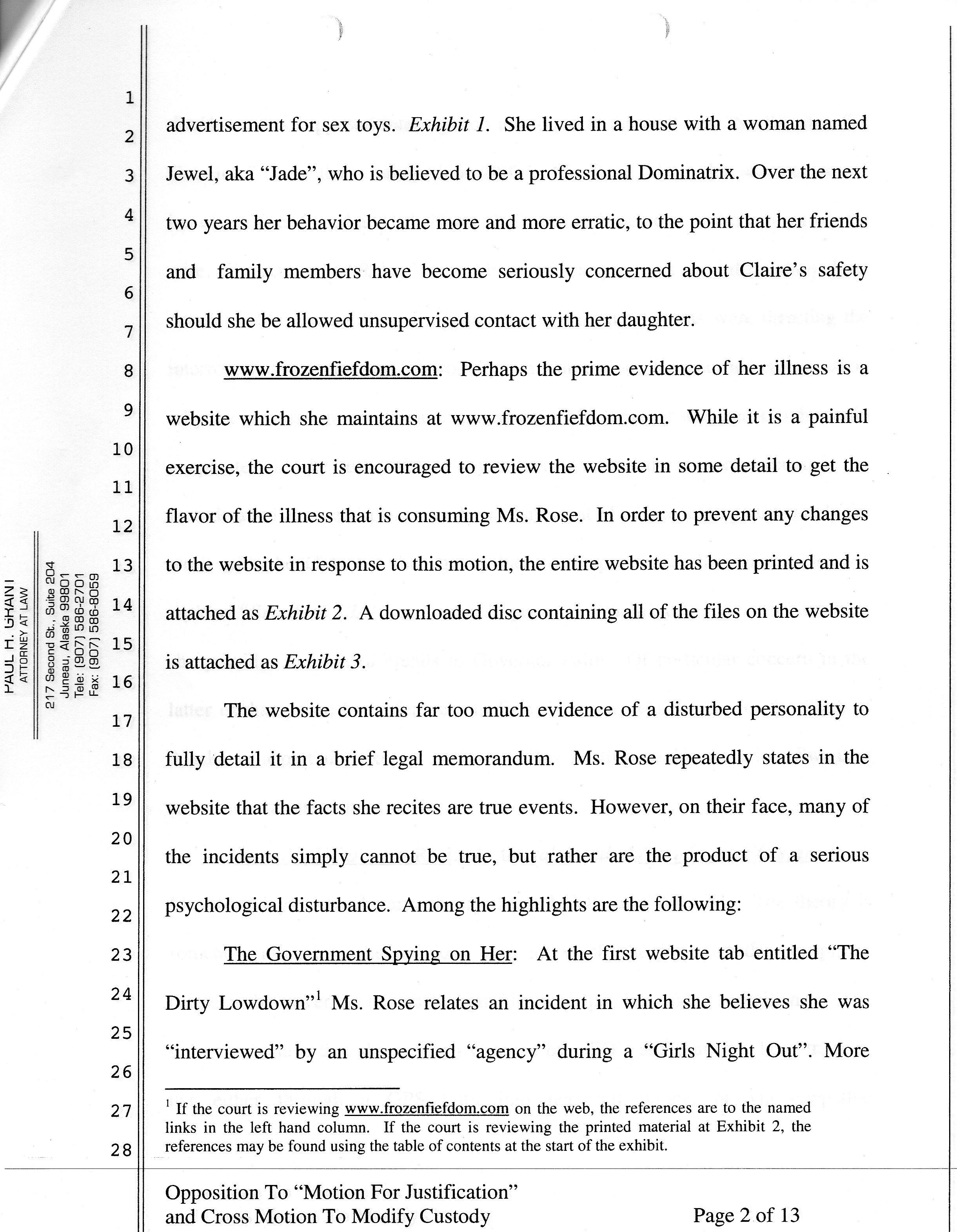 Sentence 2. Please explain, in detail, how a court or judge would find reading my website to be a "painful exercise." Eyestrain might occur, unless they print their own copy, but I believe they will find it to be a very interesting site.